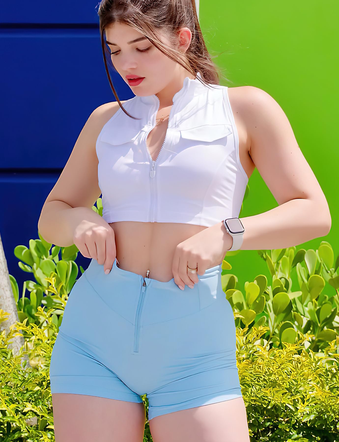 YEOREO CoreFlex Cargo Pocket Workout Shorts for Women Scrunch Zipper 3.6" High Waisted Yoga Gym Shorts