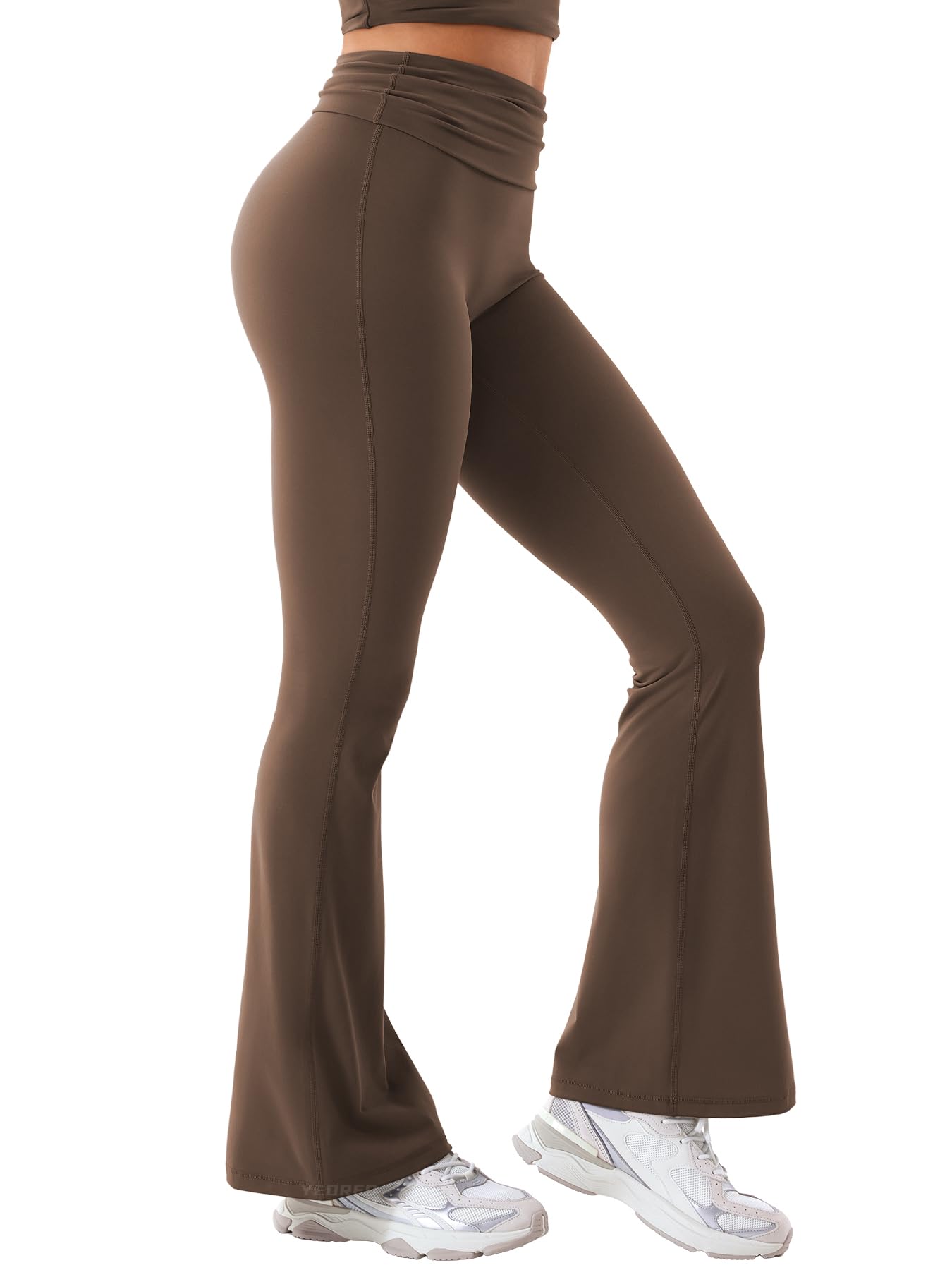 YEOREO Romola Women Yoga Pants Flare Leggings with Tummy Control High Waist Fold Over Bootcut Wide Legs Workout Legging