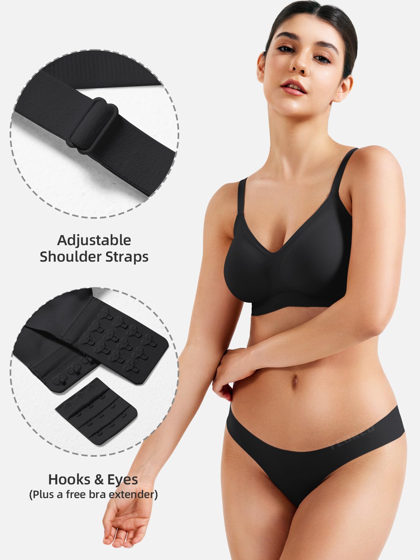YEOREO Women Push Up No Underwire Bra Full Coverage V Neck Basic Bralette Seamless Everyday Bra